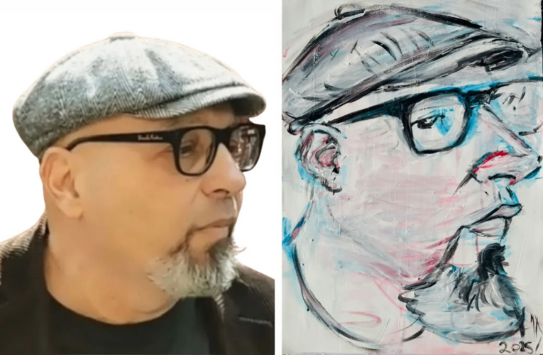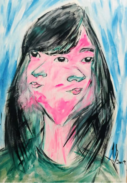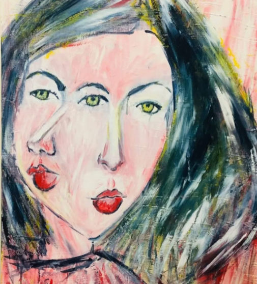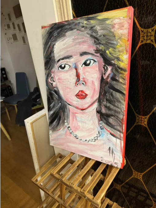 This is an acrylic canvas self-portrait paintingcompleted this July 2025.