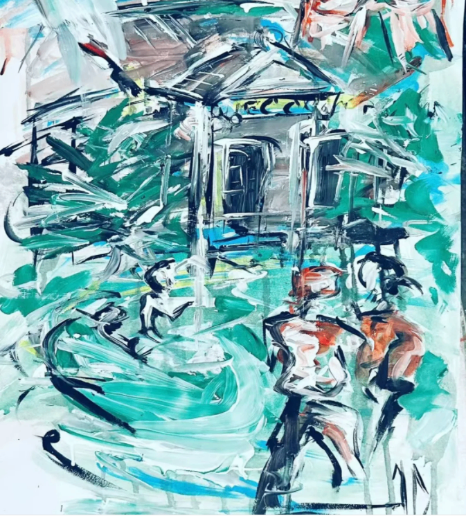 A painting created in my hometown in the botanical gardens in the city area